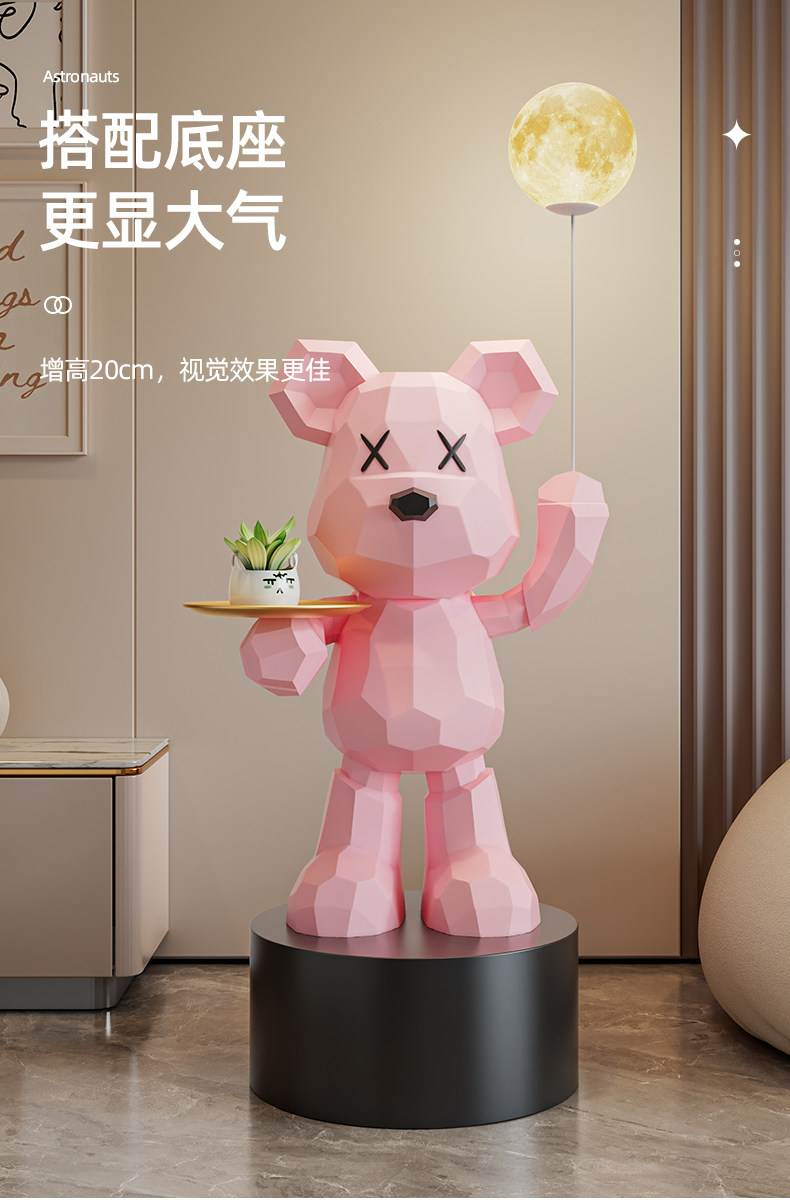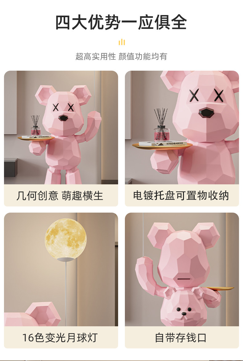 【粉色】几何托盘机械熊存钱罐款+黑色展台 高137CM