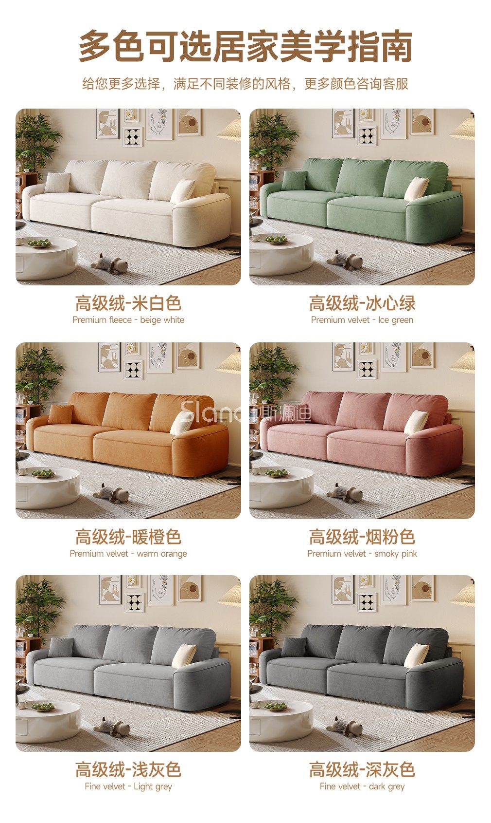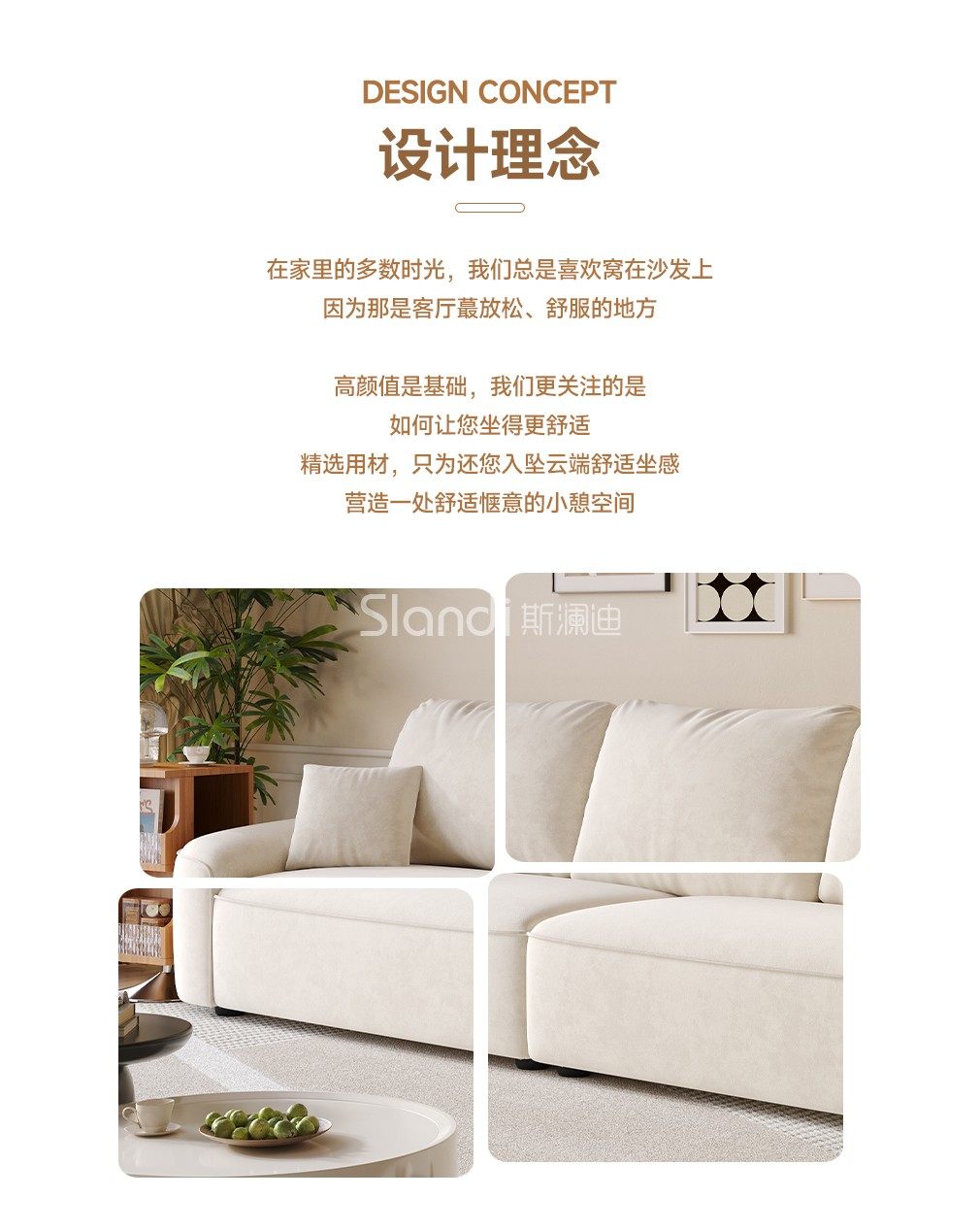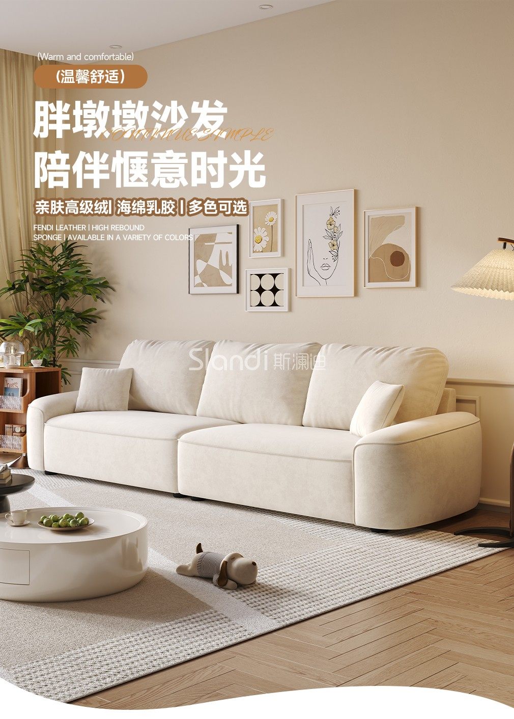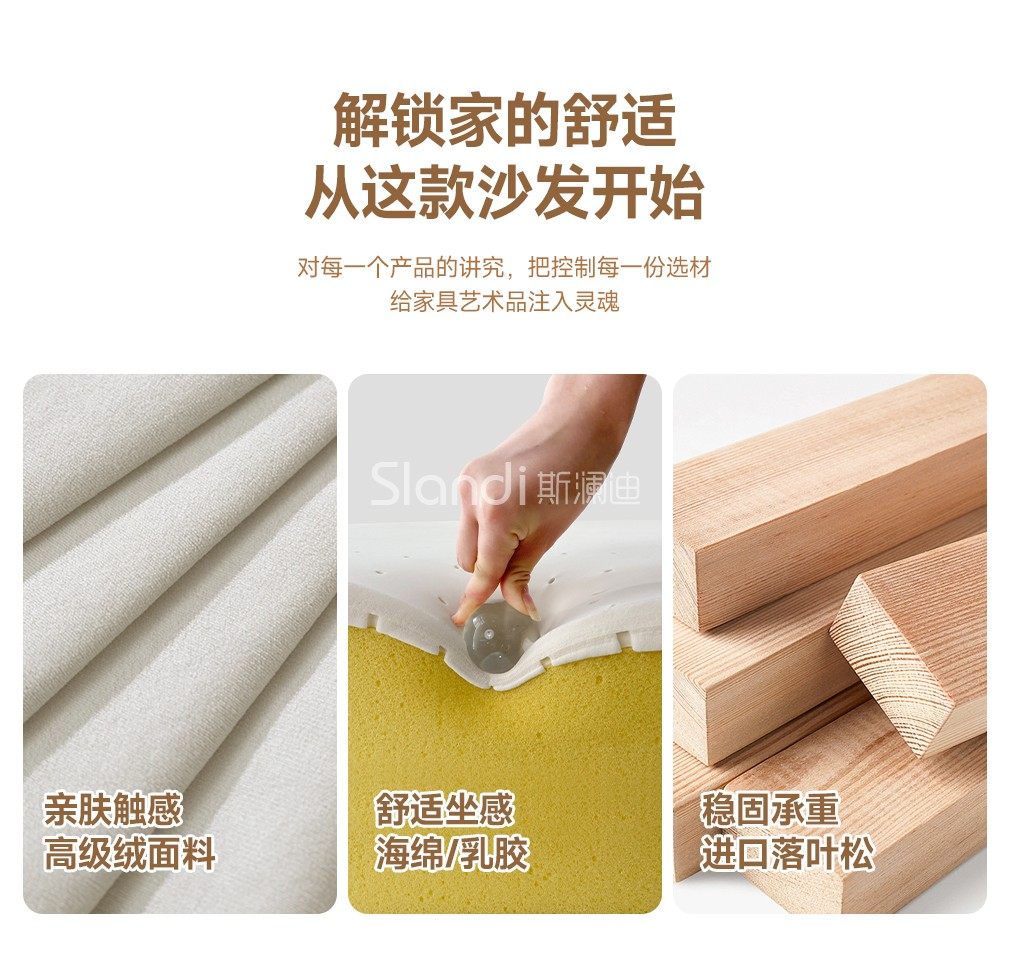 斯澜迪奶油风高级绒布艺沙发