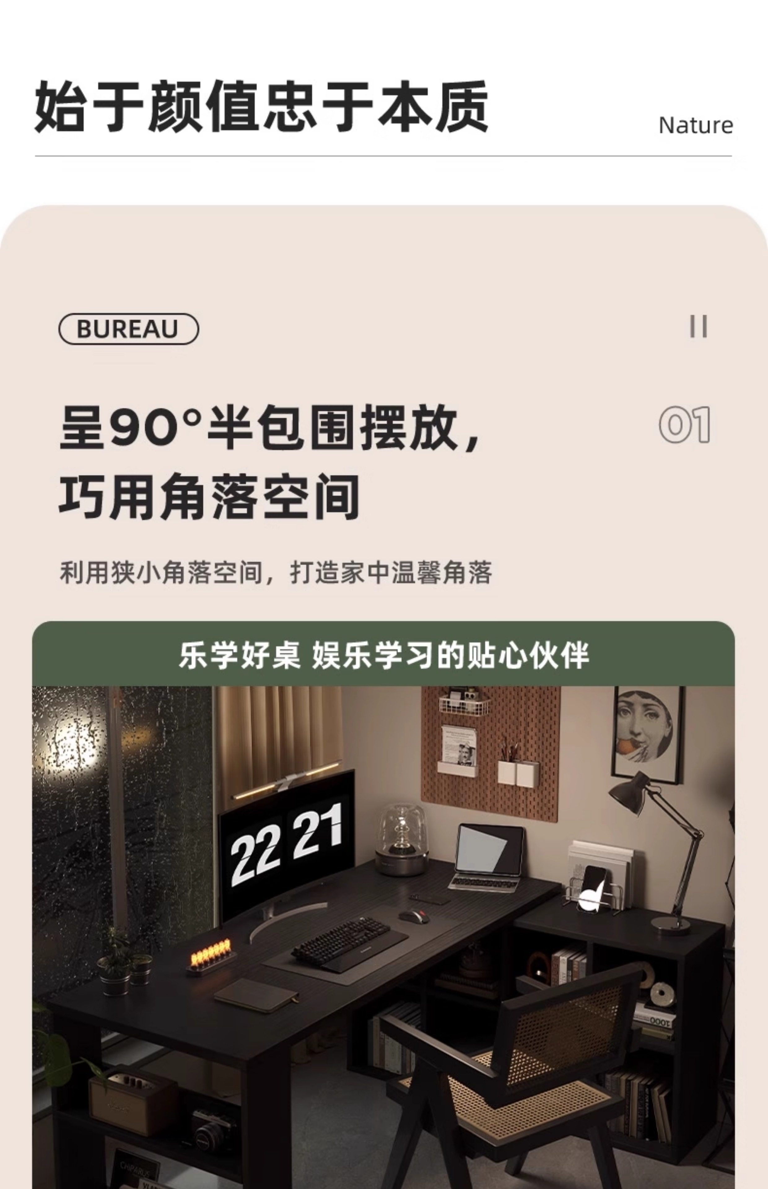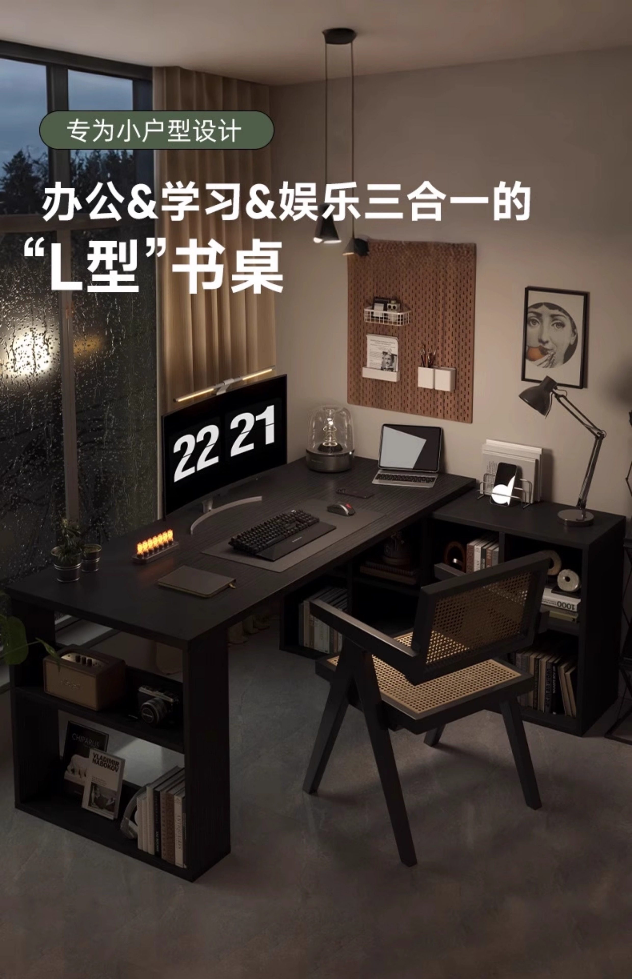 【26mm加厚桌面】120桌+100柜中古布莱克黑