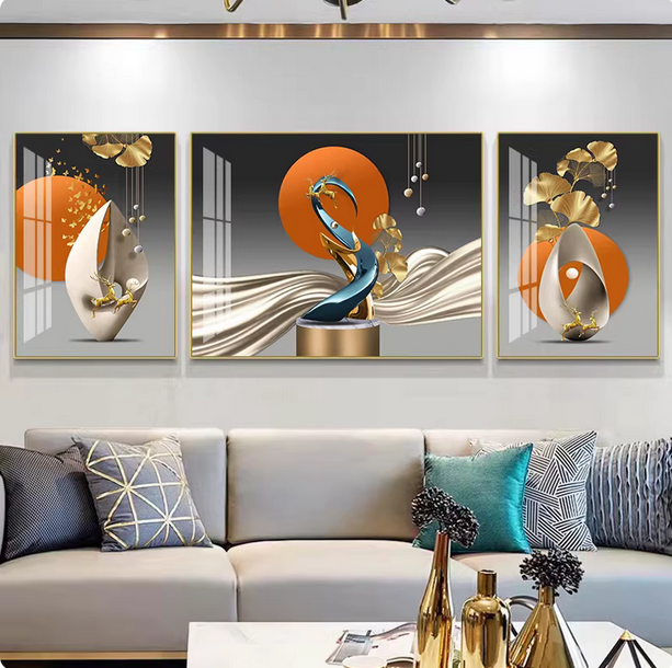 - 现代简约客厅装饰三联画