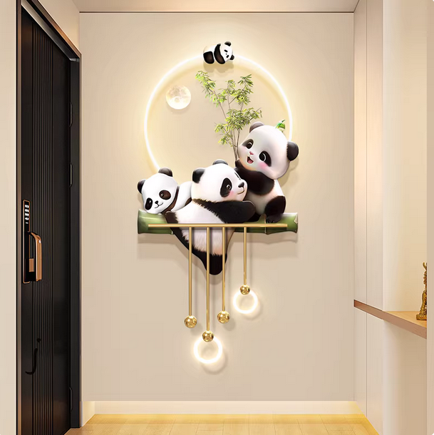 - 熊猫玄关装饰画奶油风