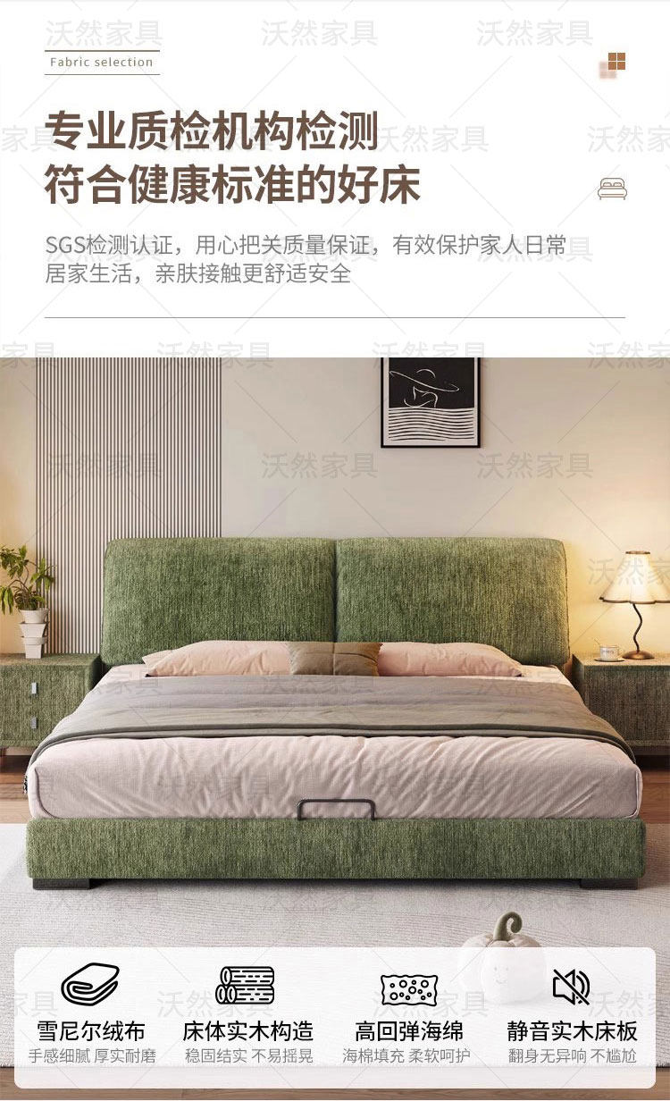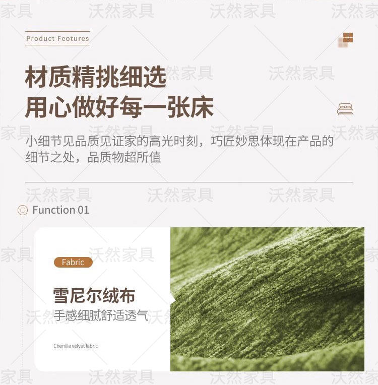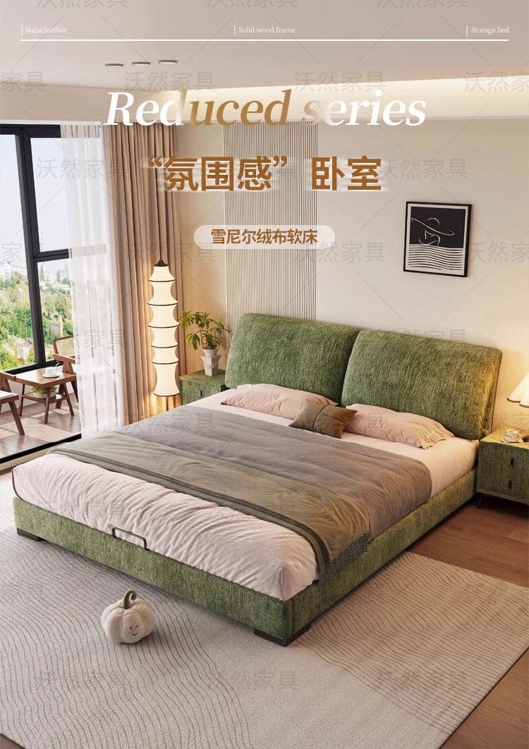 意式极简雪尼尔绒床